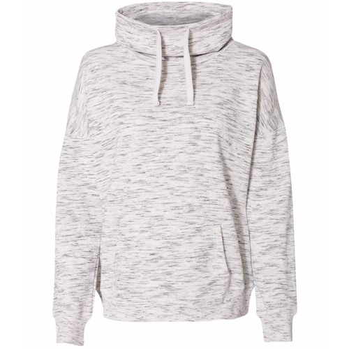 J America LADIES' Melange Fleece Cowl Neck